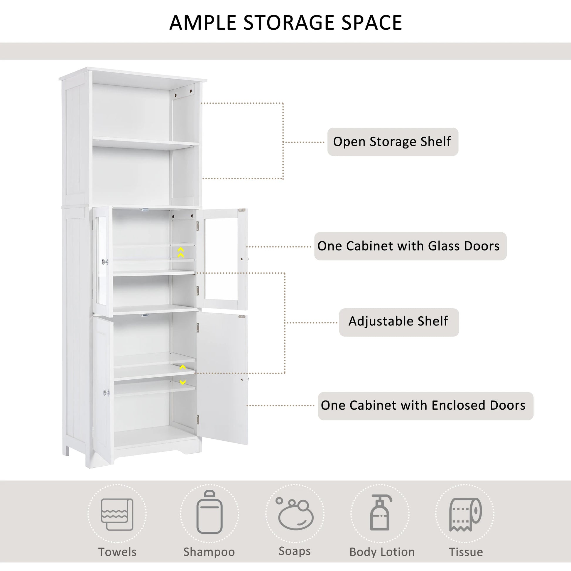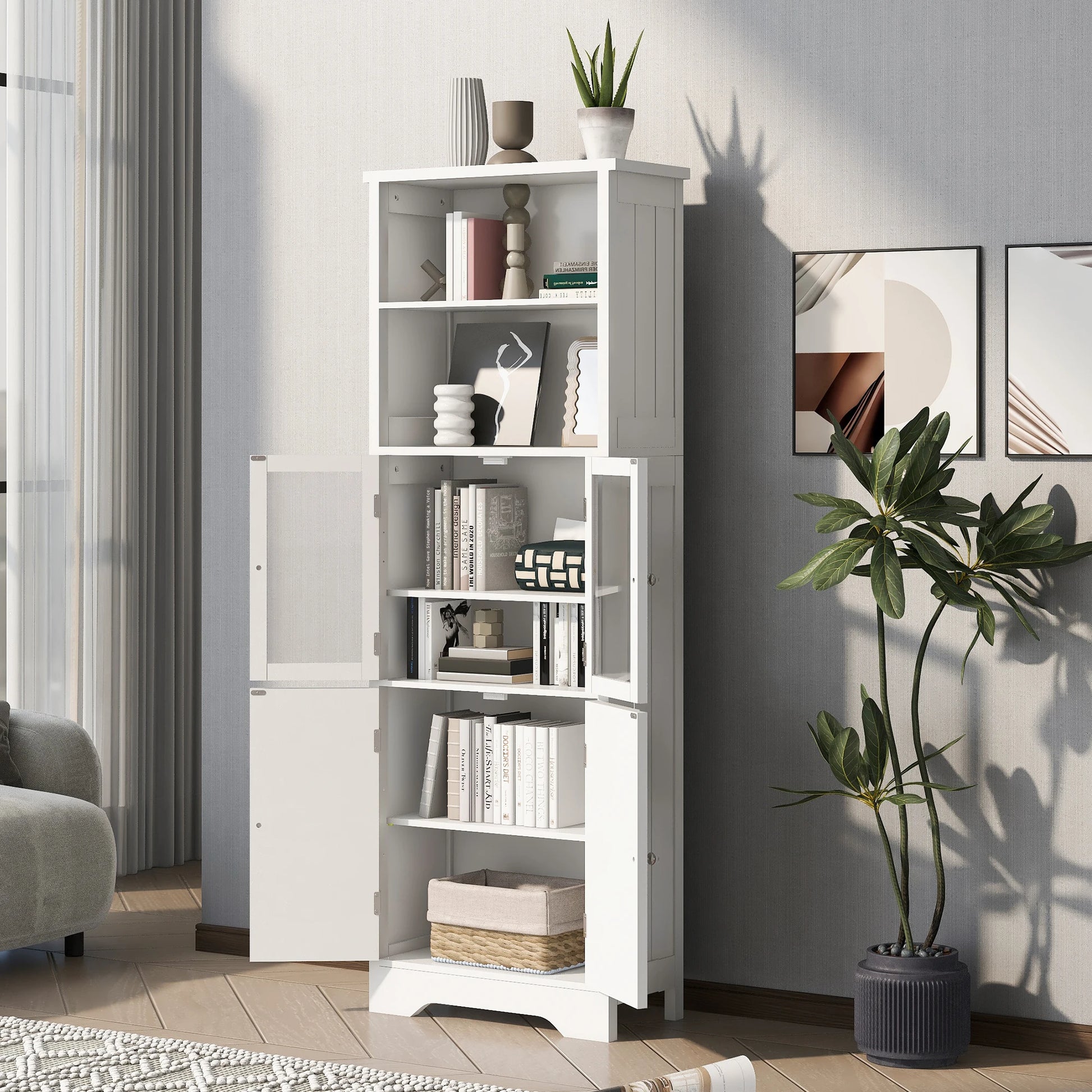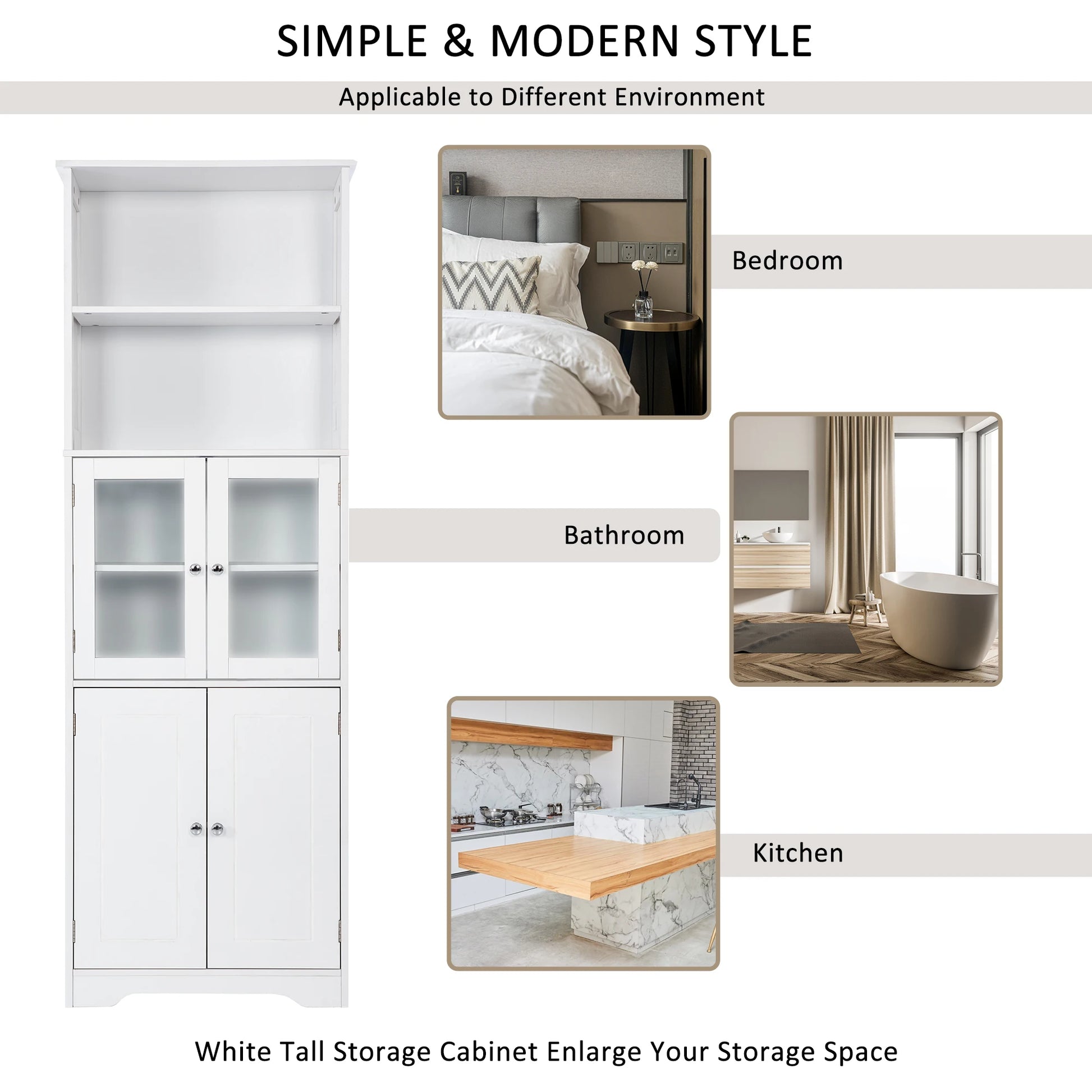 White Tall Storage Cabinet with Shelves and Doors for Bathroom, Kitchen and Living Room, MDF Board
